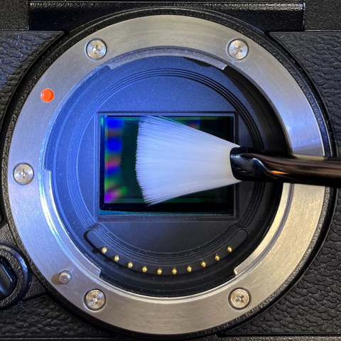 - Avoid bringing Sensor Brush® fibers in contact with camera’s chamber area.